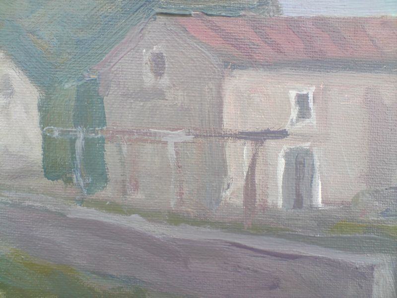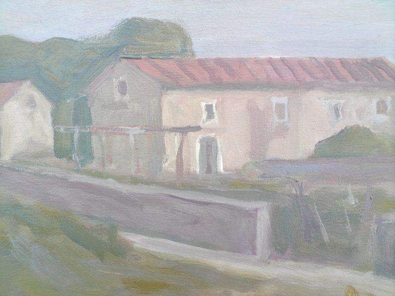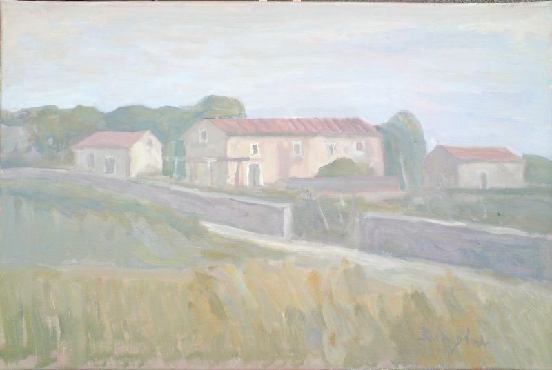 Slika iz ciklusa slika rađenih s motivima otoka Pašmana. Tipične kamene kuće i suhozidi našeg Jadrana. Slika je napravljena u tipičnoj izvedbi M. Bingule, ugodna i lijepa. Prodaje se bez okvira.
