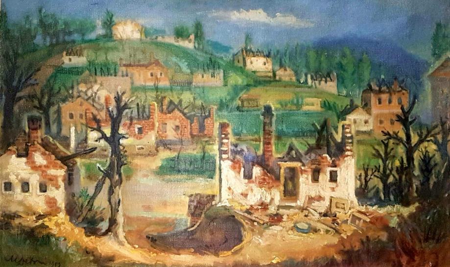 Marijan Detoni "Zgarište" ulje na platnu 78x116cm; iz 1952 god