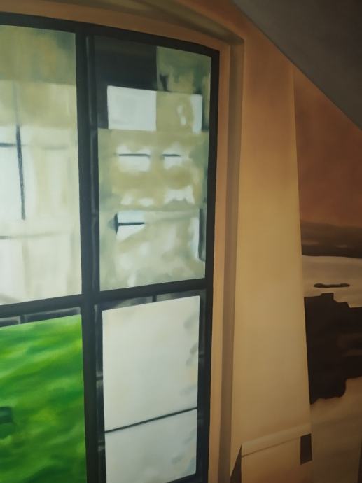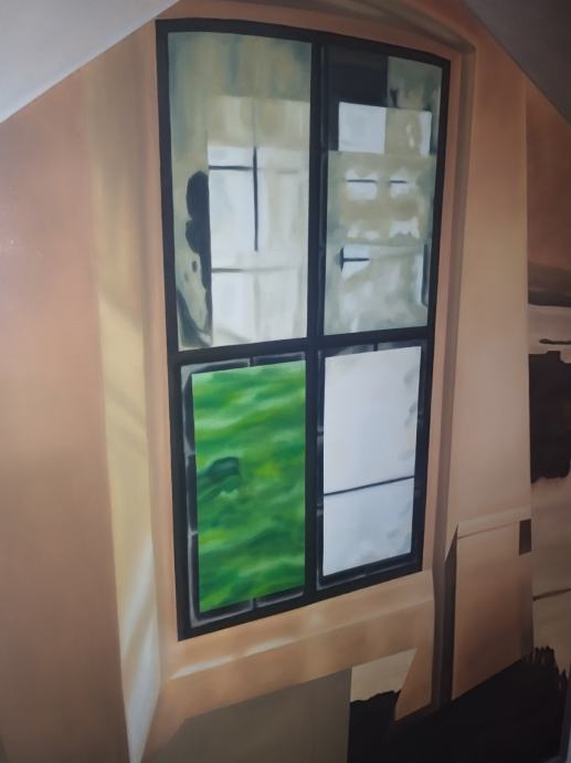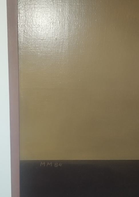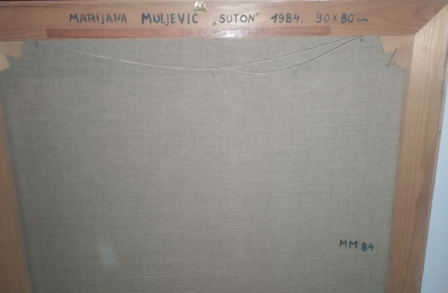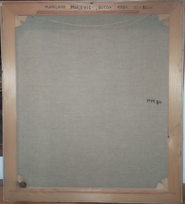 Ulje na platnu akademske slikarice Marijane Muljević, jedne od najznačajnijih predstavnica figuracije u hrvatskom slikarstvu. Dimenzije 91x81cm.