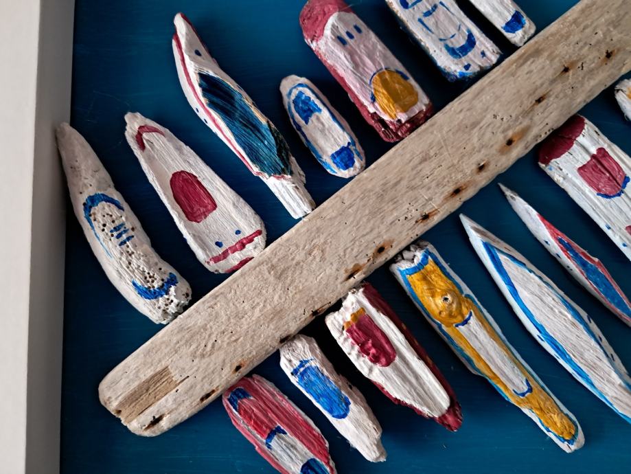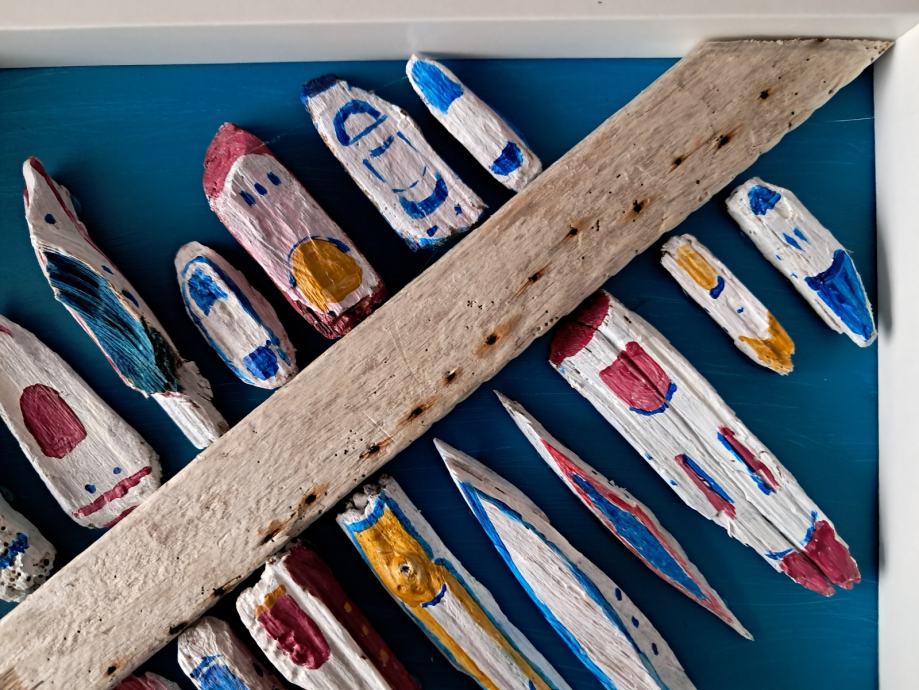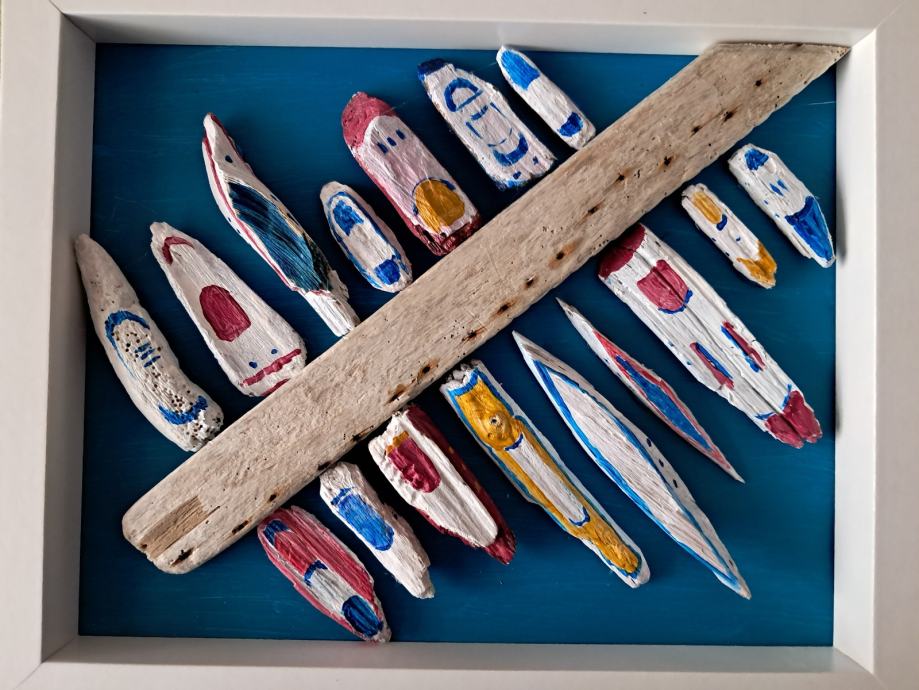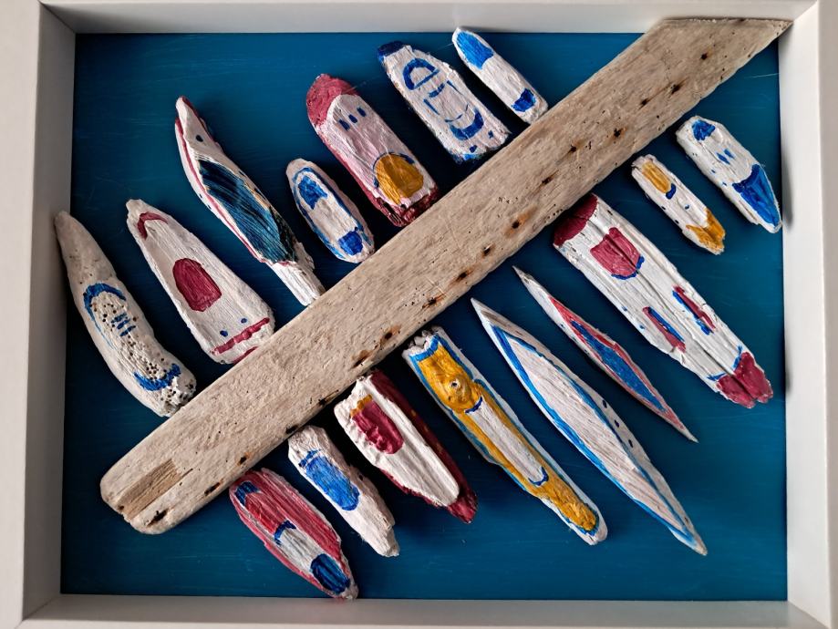 Ova lijepa slika izrađena je od morskih naplavina inspirirana morem i barkama.Usidrene u nekoj luci sjećaju nas na more.Dimenzija slike je 28×23 cm.