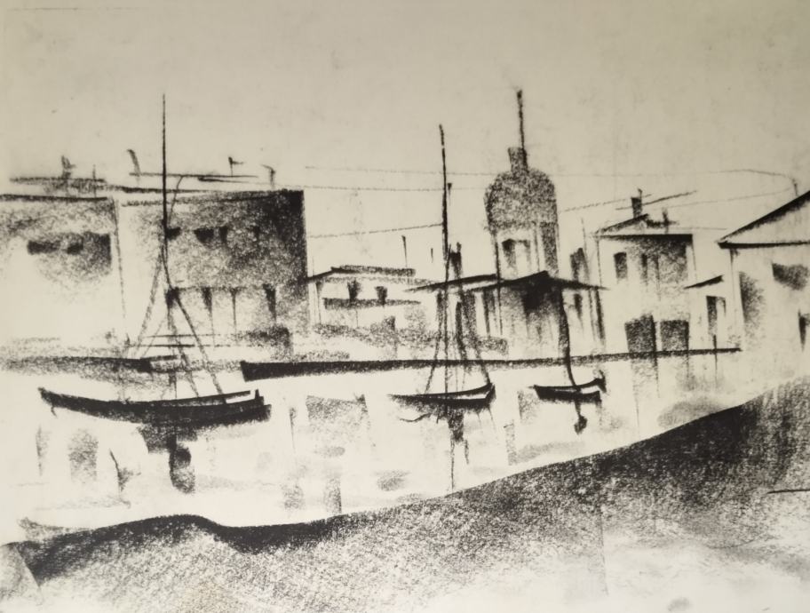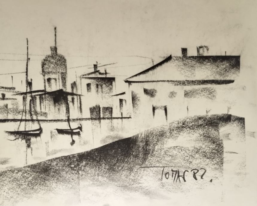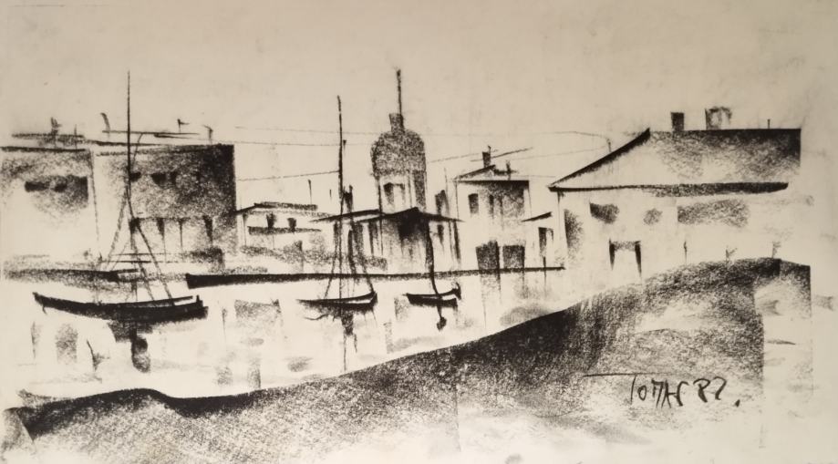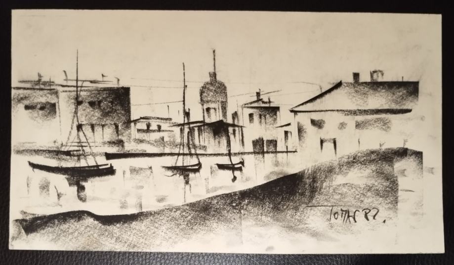 Crtež hrvatskog akademskog slikara Maria Tomasa. Dimenzije su cca 28x16cm. Bez okvira. Primorski motiv.
