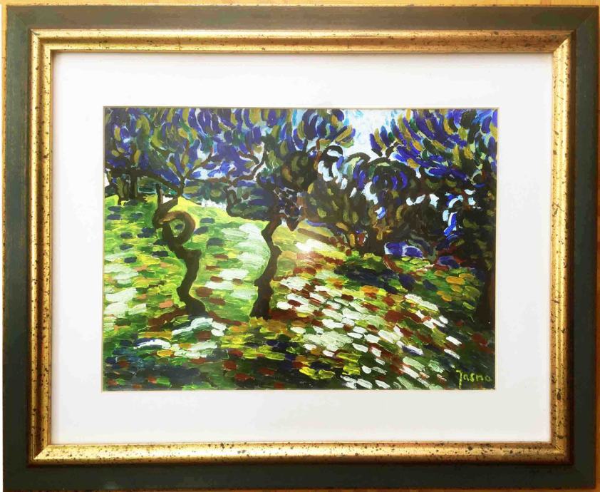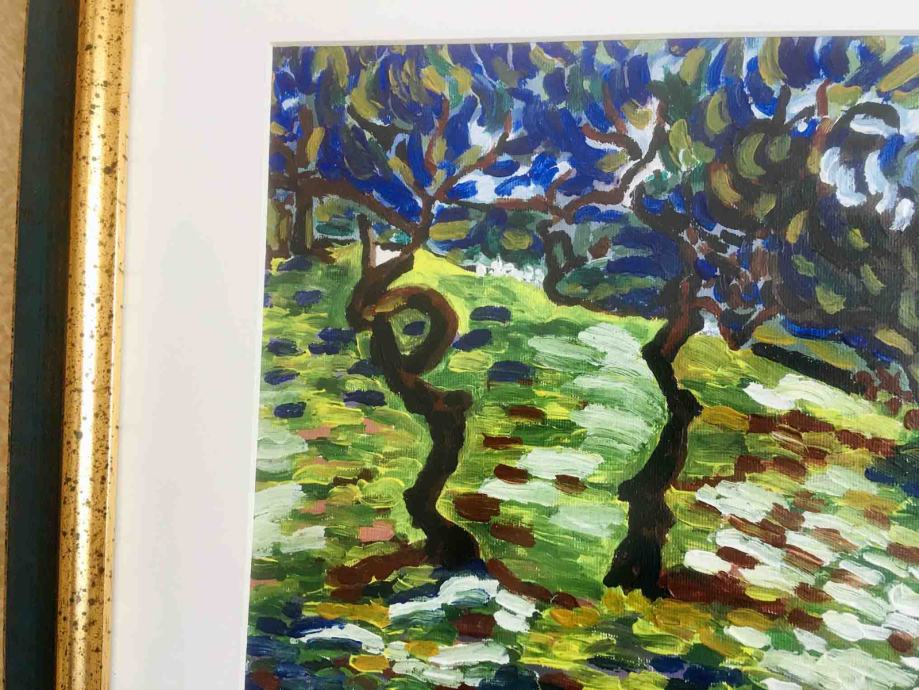 Prodajem umjetničku sliku uokvirenu Masline u akrilu u debljem sloju dimenzija sa okvirom 51 cm x 41 cm.