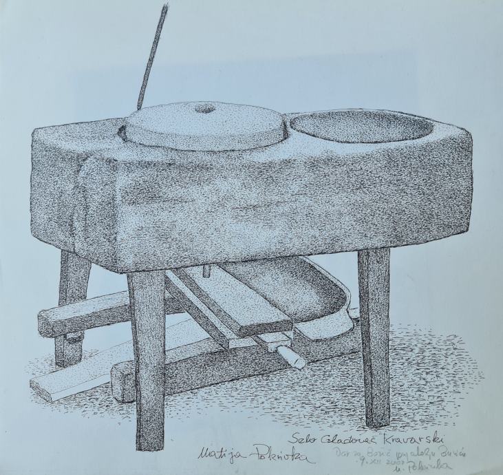 Matija Pokrivka "Selo Glađovec Kravarski" crtež tušem 40x40cm;