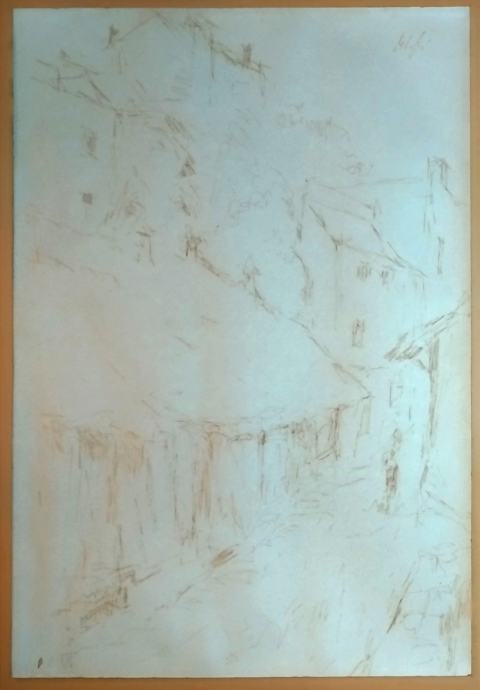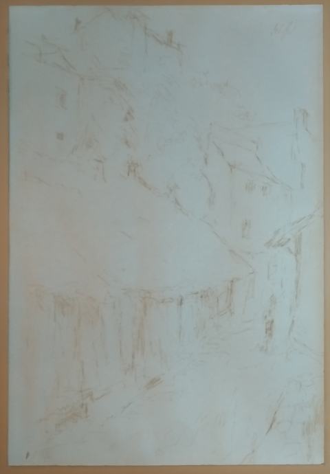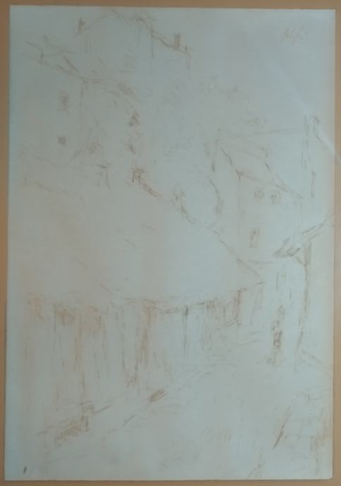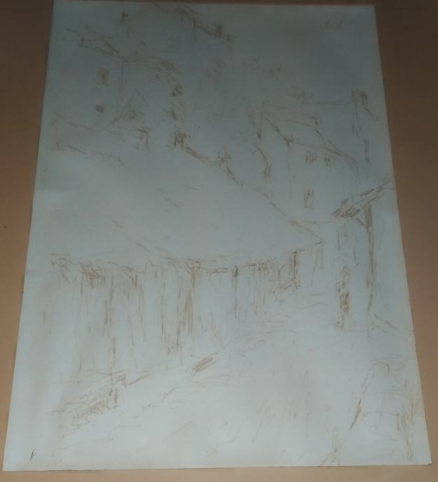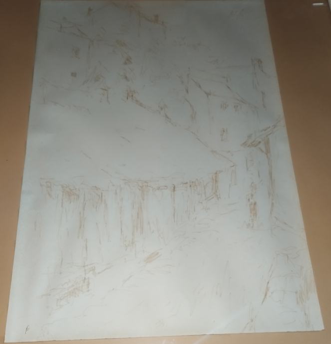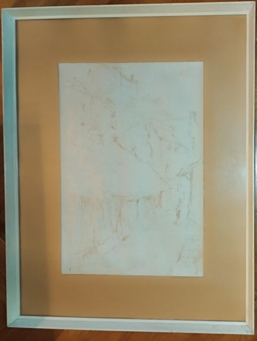 Akvarel poznatog BiH slikara, pjevača i skladatelja. Uramljeno i ostakljeno. Dimenzije s ramom 72x57cm (sama slika 48x34cm).