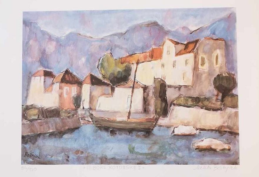 Melita Bošnjak: slika iz "Boke kotorske II" (hrvatska slikarica rođena u Zagrebu 1917. Slikarski radovi nadahnuti su joj Bokom kotorskom.