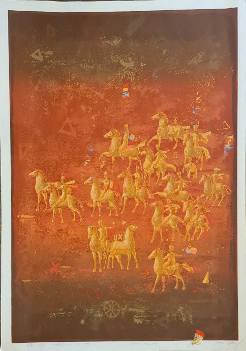 Mersad Berber "Crvena konjica" svilotisak serigrafija / ulje 92x75cm;