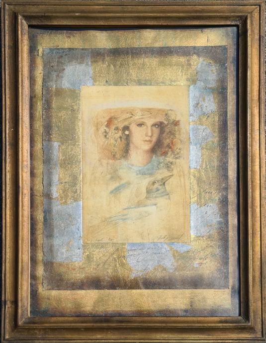 Mersad Berber "Djevojka s gavranom" kombinirana tehnika 70x50cm;