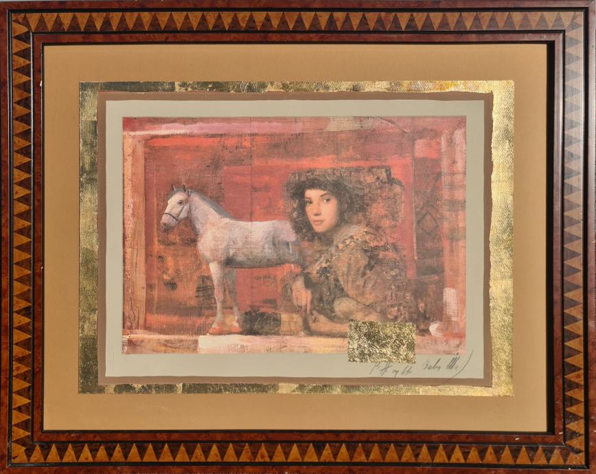 Mersad Berber "Djevojka i konj" kombinirana tehinka 50x70cm; iz 1997 g