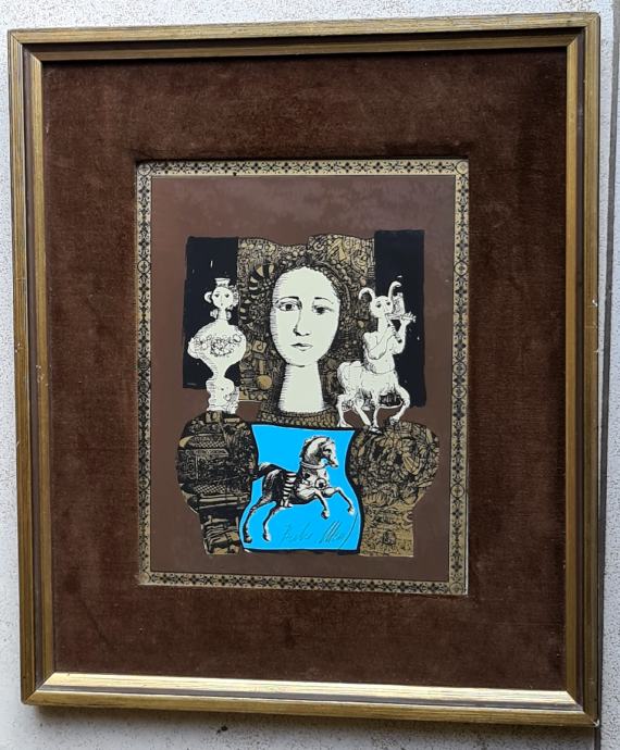 Mersad Berber "Djevojka i konj" kombinirana tehnika 30x20cm; iz 1972 g