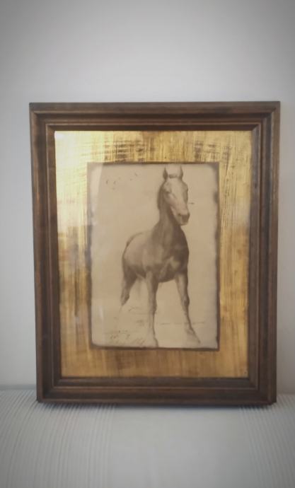 Naziv slike je Konj, grafika Mersad Berbera, uokvireno, vel.slike 18x26 cm, a okvira 34x43 cm