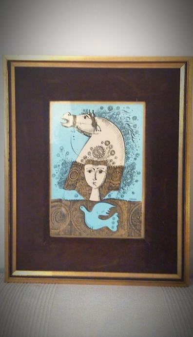Naziv slike Djevojka i konj, pok. slikara Mersada Berbera kombinirana tehnika, original, veli.slike16x24 cm, a okvira 32x39 cm