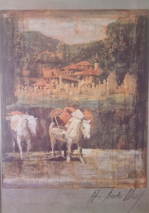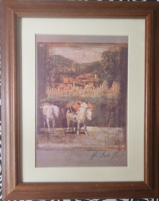 Grafika Mersad Berbera s lijepim masivnim drvenim okvirom ukupne dimenzije 45x35 cm