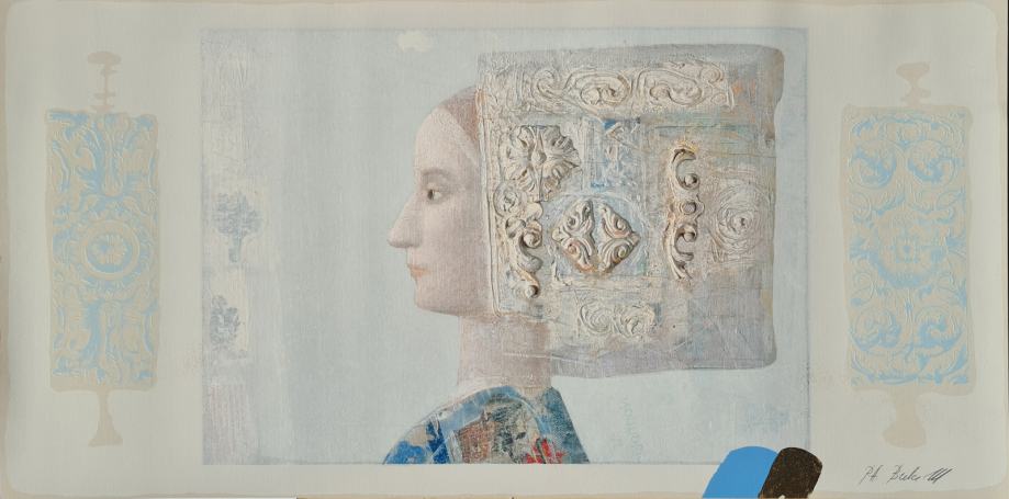 Mersad Berber "Profil u bijelom" kombinirana tehnika 35x70cm;