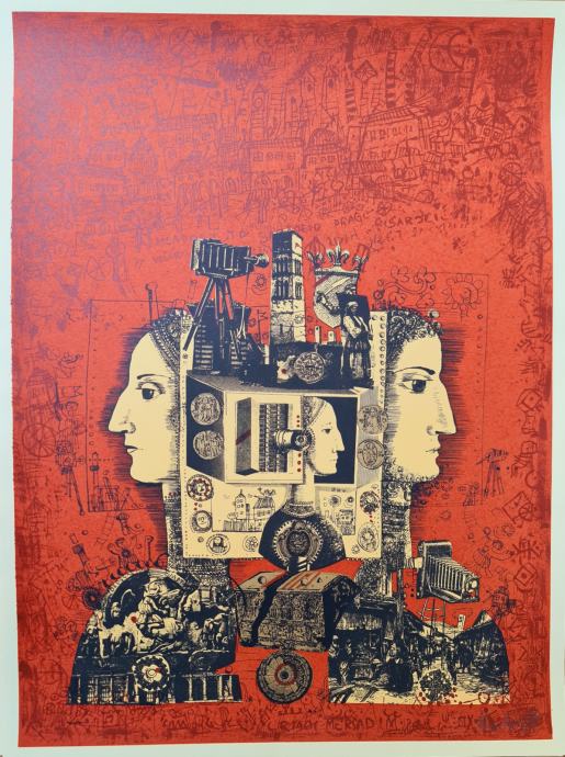 Mersad Berber "Profili u crvenom" kombinirana tehnika 51x39cm; 1971 go