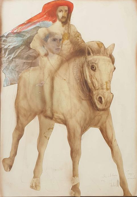 Mersad Berber "Tempo Secondo iz filma II." crtež, kolaž, ulje 70x50cm
