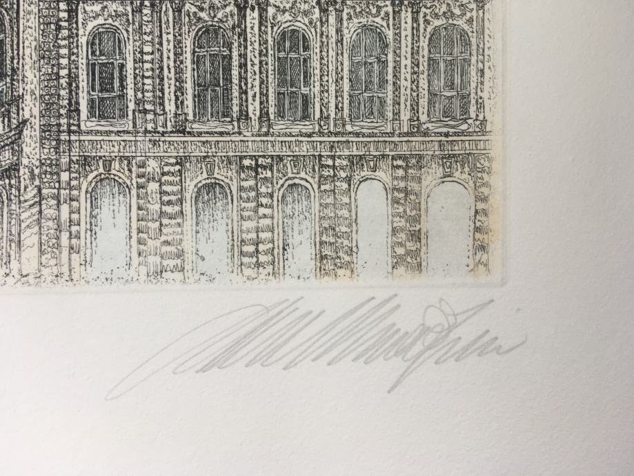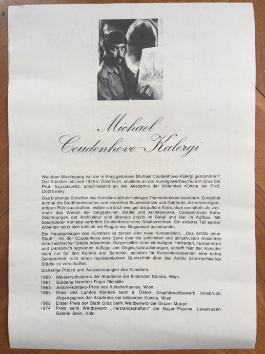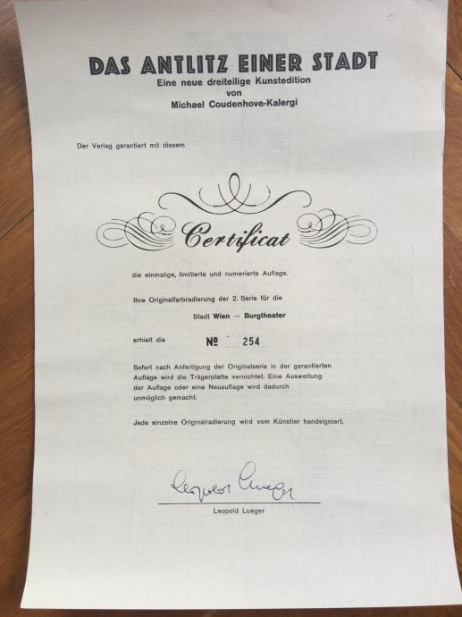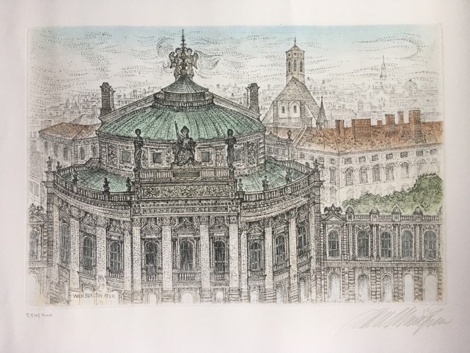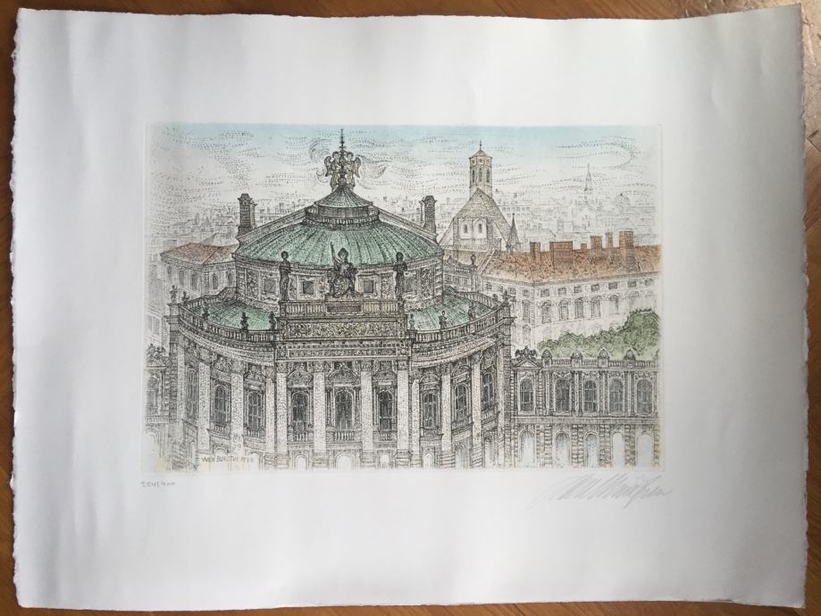 Potpisana i numerirana grafika iz 1979.g. cijenjenog austrijskog akademskog slikara s certifikatom. Slikar je rođen 1937.g. u Pragu a završio Umjetničku akademiju u Beču 1960.g. Dimenzije lista grafike su 65x50cm.