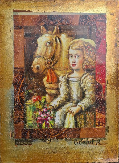 Midhat Jelkić Bosner "Djevojčica i konj" kombinirana tehnika 34x24cm;