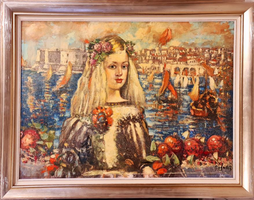 Midhat Jelkić Bosner "Djevojka i Dubrovnik" ulje na platnu 70x100cm;
