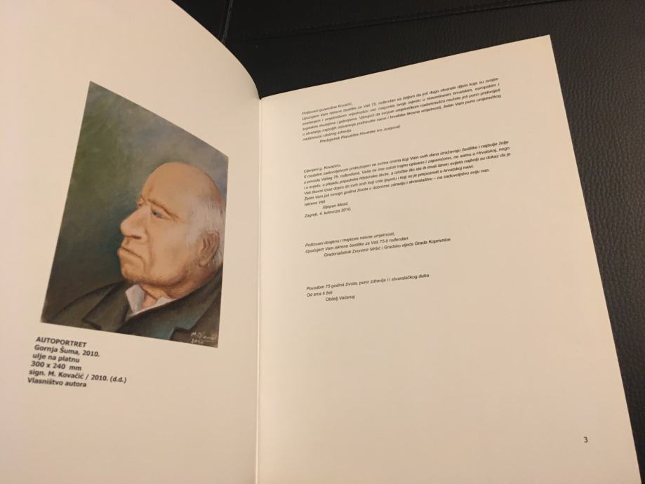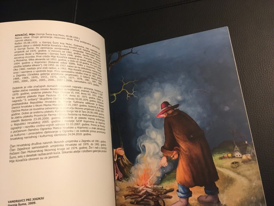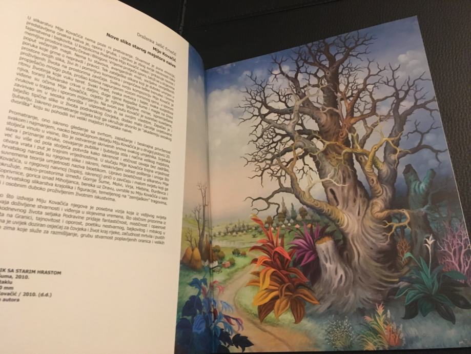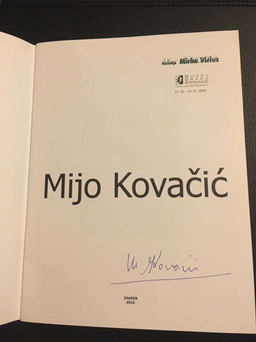 Potpisani katalog izložbe jednoga od najvećih hrvatskih naivnih slikara, Mije Kovačića. Muzej grada Koprivnice 2010.g., 32 str., format 27x20cm.