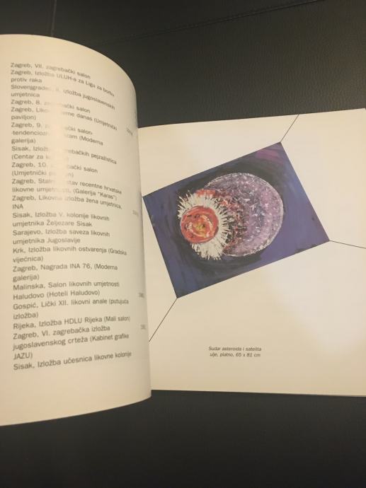 Potpisani katalog izložbe iz 1998. poznate hrvatske akademske kiparice i slikarice Mile Kumbatović. Naziv kataloga "Od kamena do satelita", 44 str.