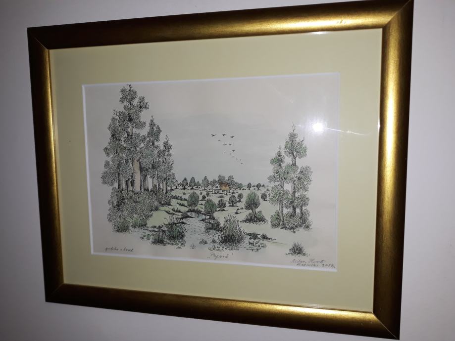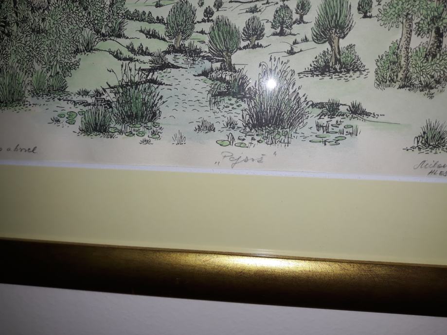 Prodajem sliku "Pejzaž", autora Milana Horvata Hlebinskog. Tehnika grafika, akvarel. Dimenzije okvira 55x44 cm.