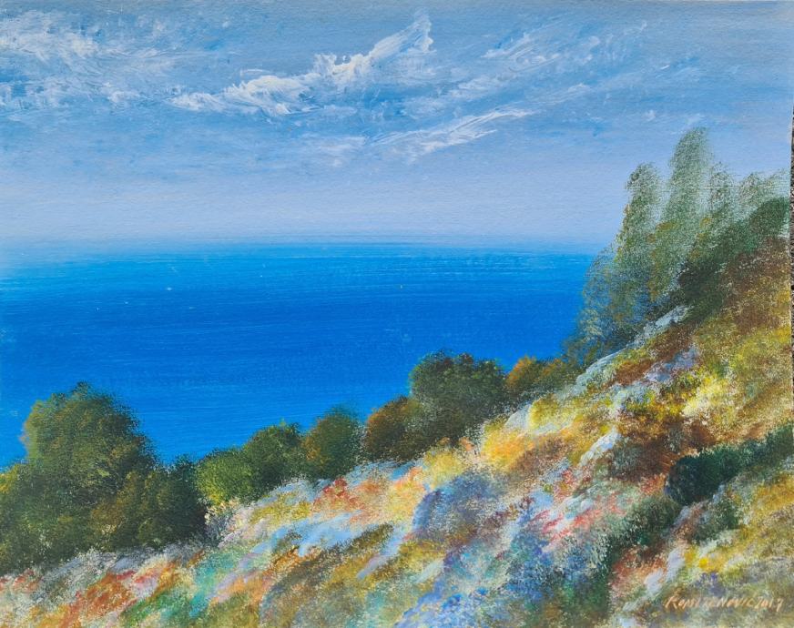 Milan Komljenović "Pejzaž s pogledom" tempera na kartonu 36x45cm;