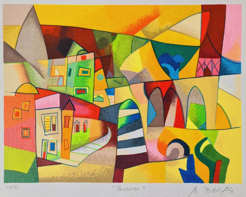 Miljenko Bengez "Grad 5" reljefna svilotisak serigrafija 40x50cm;