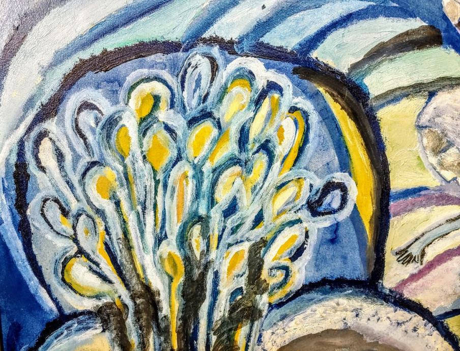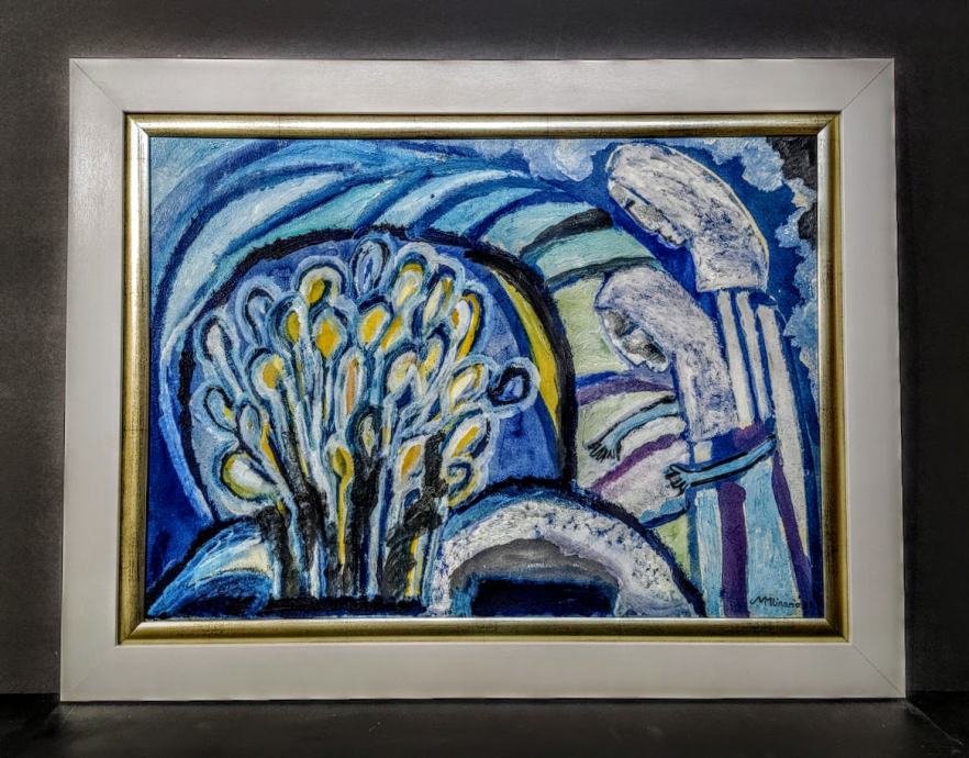Tempera, uramljena, dimenzije s okvirom 78x62 cm.