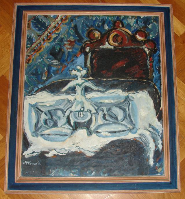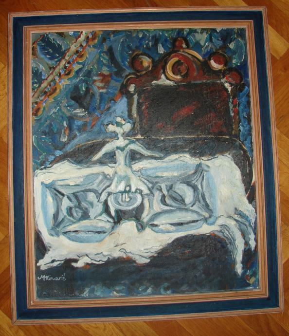 Mirjana Mlinarić - ulje na platnu. Kvalitetno uokvireno. DImenzije s okvirom su 77x66cm (dimenzije samoga platna su 65x54cm). Cijena je fiksna!!!