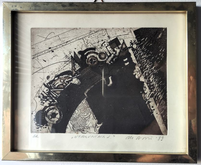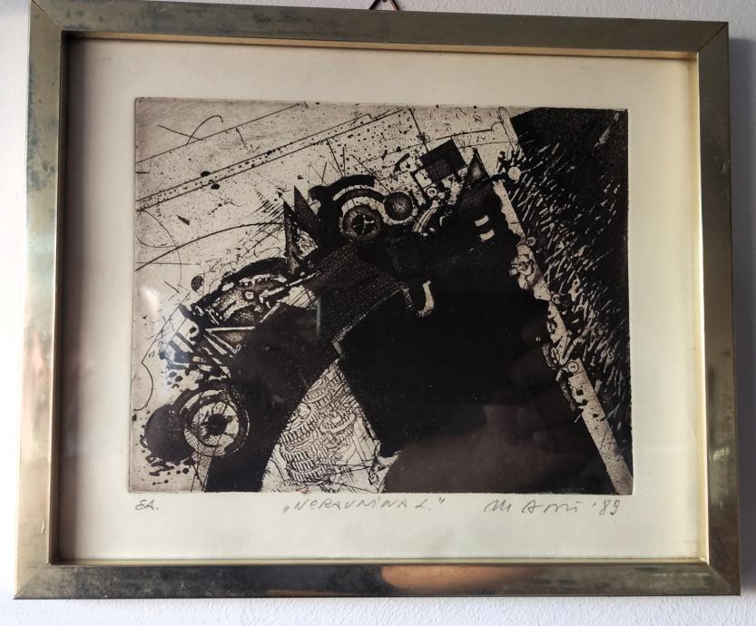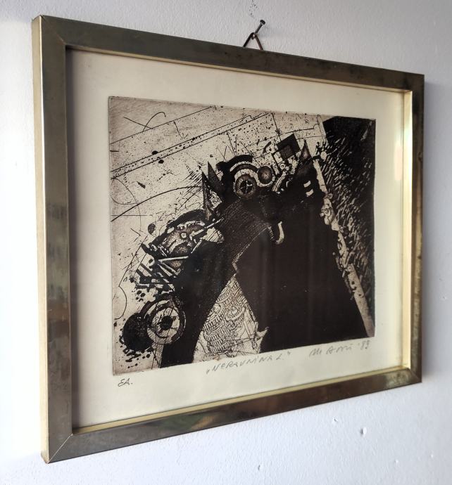 Uokvirena, sa staklom. Autorov primjerak, potpisana.