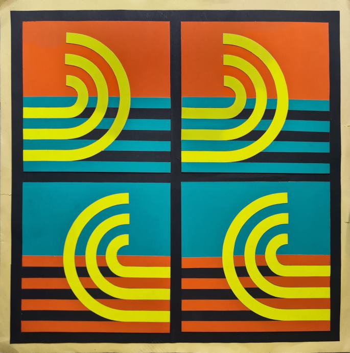 Miroslav Šutej "Geometrija" instalacija kolaž 66x66cm; oko 1967 godine