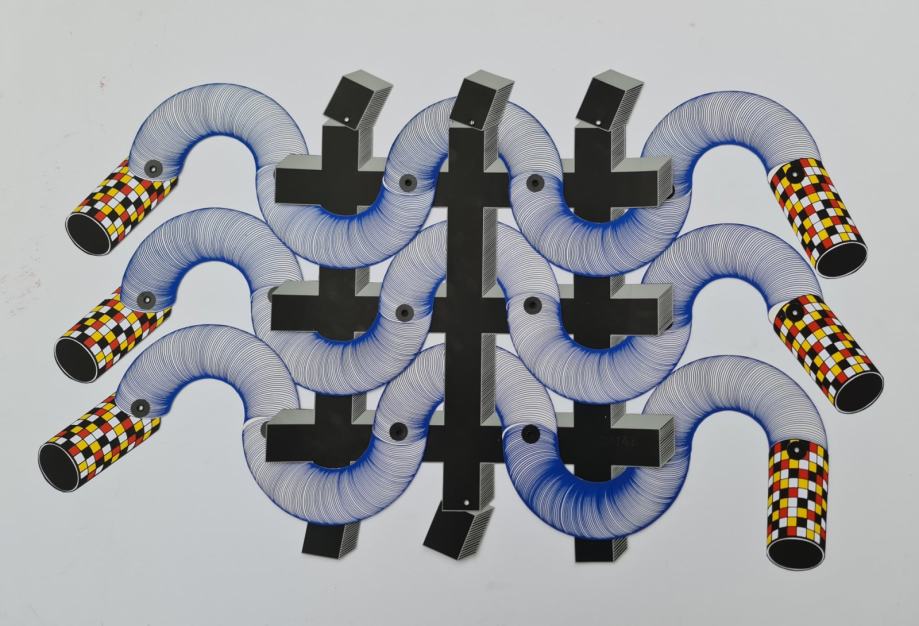 Miroslav Šutej "Kompozicija #" mobilni kolaž 70x100cm; ; iz 1978 god