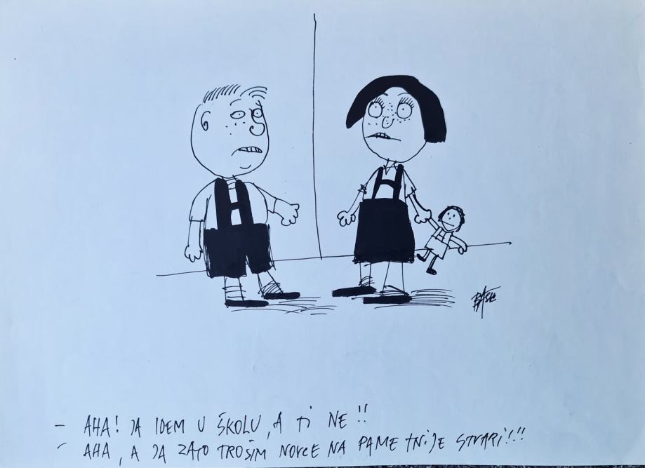 Mladen Bašić Bibi "Pametnije stvari" tuš strip 20x30cm; oko 1980.god;