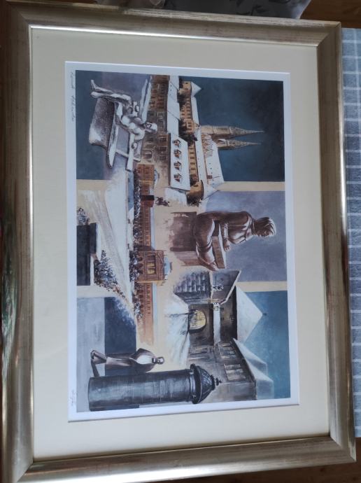 Umjetnička slika, Mladen Legin, kombinirana tehnika, motiv Zagreb
