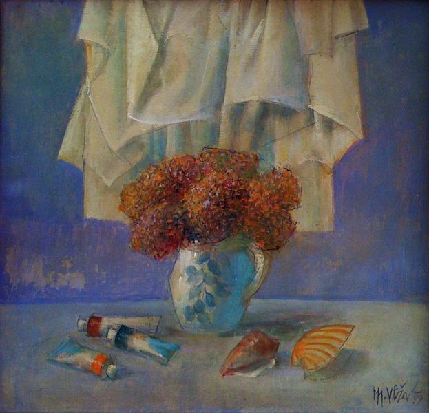 Mladen Veža diplomirao je 1937. u slikarskoj klasi profesora Vladimira Becića. Godine 1938. ima svoju prvu samostalnu izložbu.