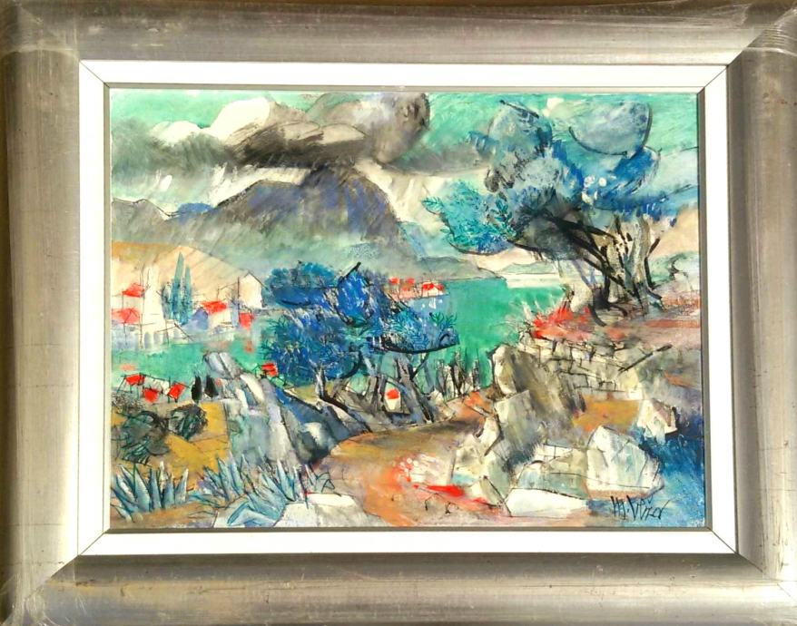 Prodajem uokvirenu sliku Mladena Veže, PEJSAŽ U BRISTU, ulje na platnu 50x60 cm. Uramljena. Ima i certifikat.