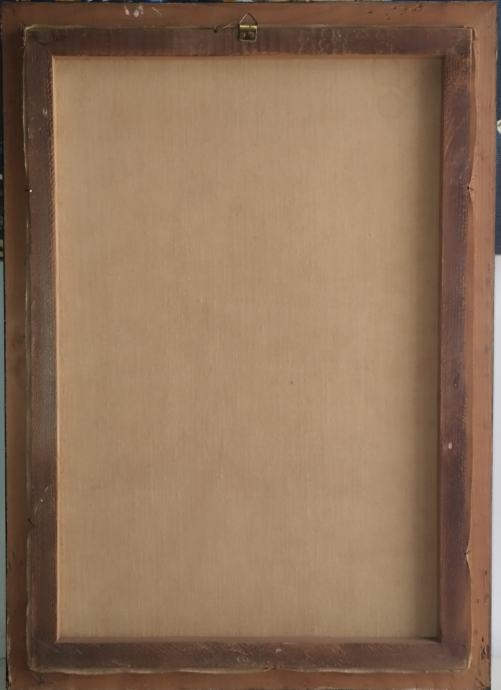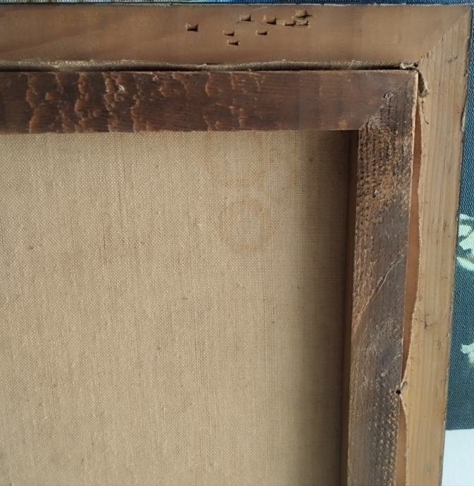Stara reprodukcija / otisak na platnu slike čuvenog talijanskog renesansnog majstora Leonarda da Vincija. Ukupne dimenzije 66x47cm.