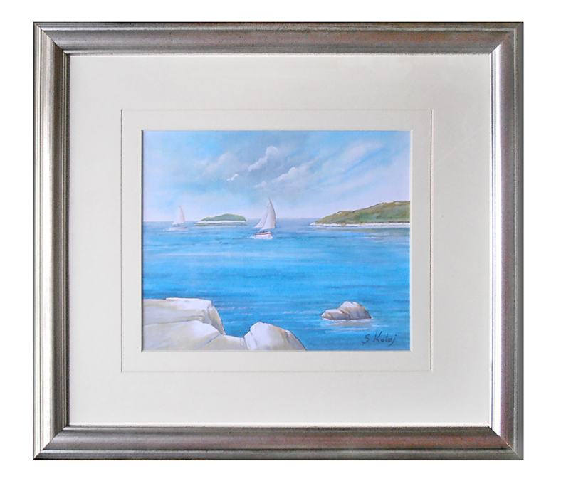 Uramljeno, akril, pod staklom,, 46 x 41 cm