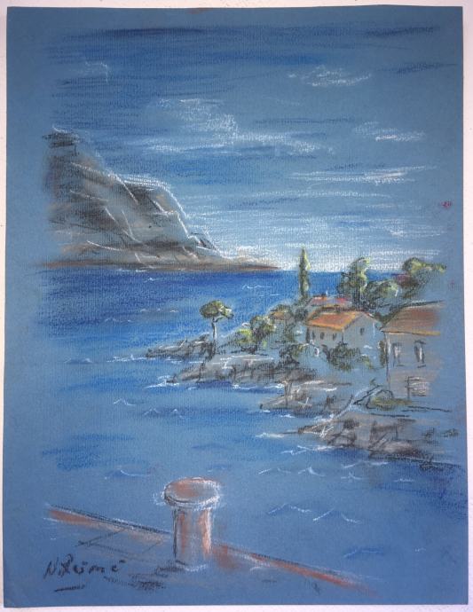 3 pastela na papiru, morski motivi, meni nepoznatog autora (mislim da je potpis N. Rašović ili nešto slično). Dimenzije su cca 35x25cm, Pojedinačna cijena slika je 300kn.