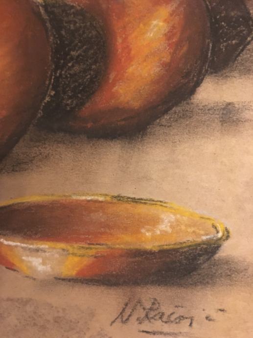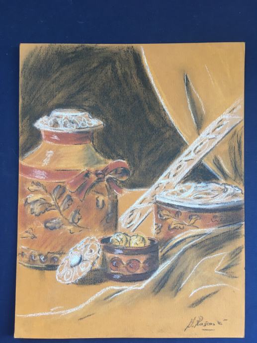 6 izvrsnih pastela, motiv mrtva priroda, meni nepoznatog autora (mislim da je potpis N. Rašović ili nešto slično). Dimenzije prvih 5 slika su 30x22cm, a zadnje dvije 35x25cm. Cijena manjih slika je 20eur/kom, a većih 25eur/kom.