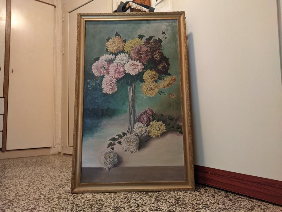 Prodajem stariju sliku rađenu tehnikom ulje na platnu, motiv mrtva priroda s cvijećem.