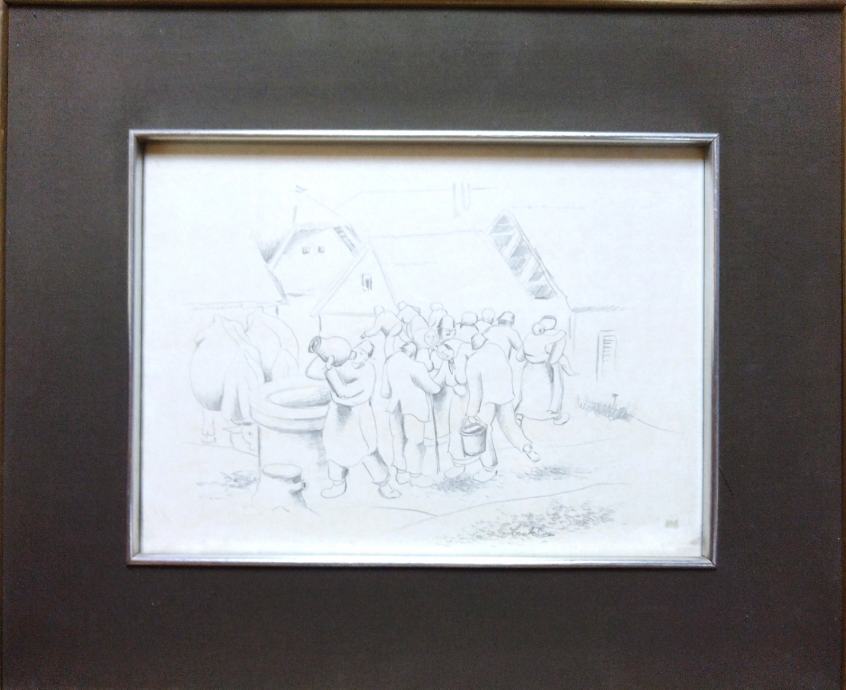 4)Branko Lovak, crtež olovkom, 22x30, sa vrhunskim Schira plišanim okvirom 37x45, potpisan