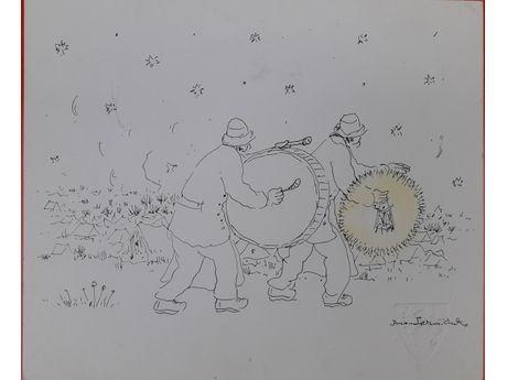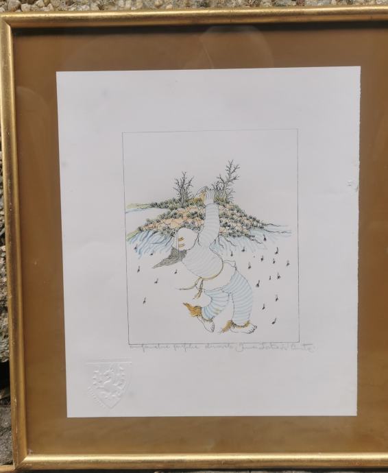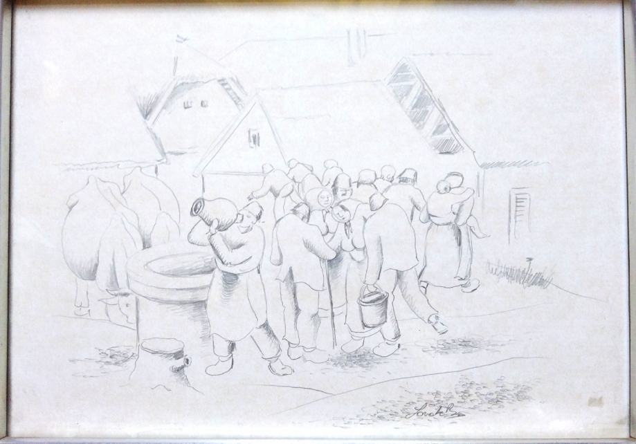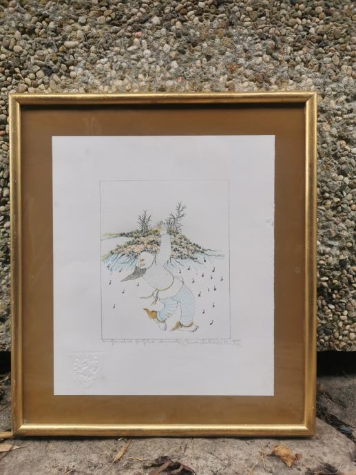 13)Ivan Lacković Croata, tuš + akvarel na kartonu, potpisan, sa suhim žigom,14,5x17, crtano tankim rapidografom, potpis također rapidografom!