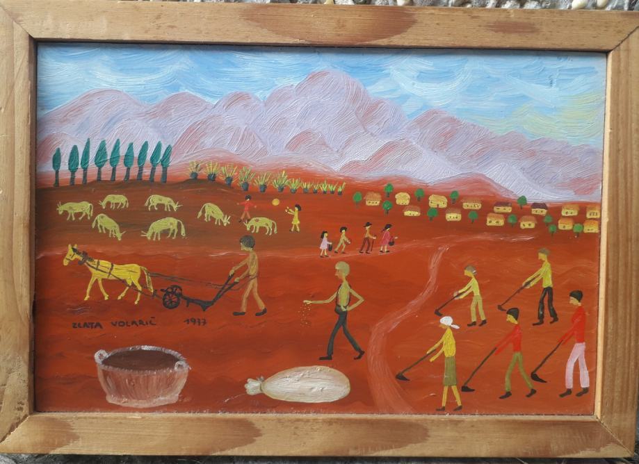 3) Zlata Volarić, ulje na drvu, 1977g., potpisano, 14x21 ulje na drvu debljine 1,5 cm, sa orginalnim okvirom 16,5x24, debljina okvira 1,8cm JAKO RIJETKO!