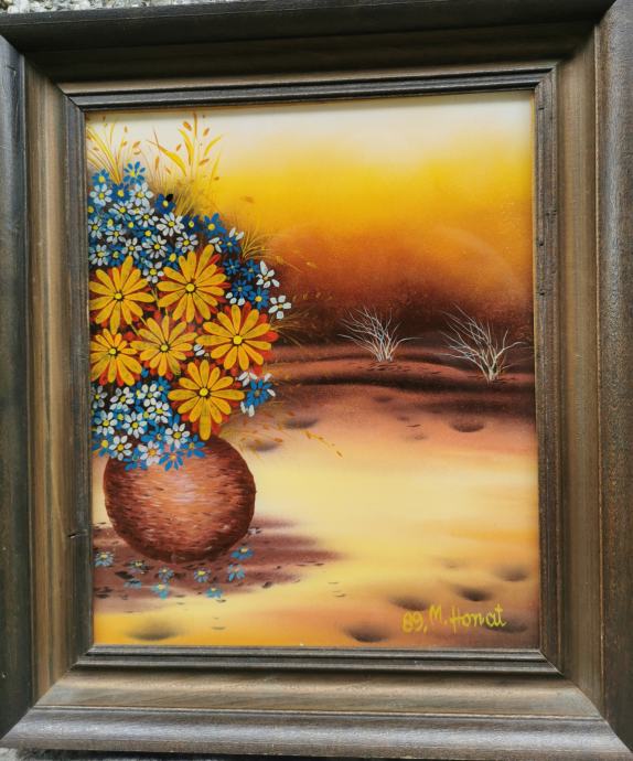 9)Milan Horvat, ulje na staklu, 30x24, sa okvirom debljine 3 cm 37x32, 1989g., uokvireno kod Marijana Napana i sa njegovim žigom, potpisano
