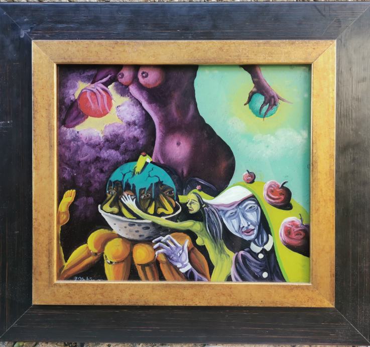 5)Fabijan Zrinjski - Habuš, Hommage Rabuzin, ulje na staklu 58x48, 1993g, potpisano i uokvireno, dimenzija sa okvirom je 61x50, u odličnom stanju