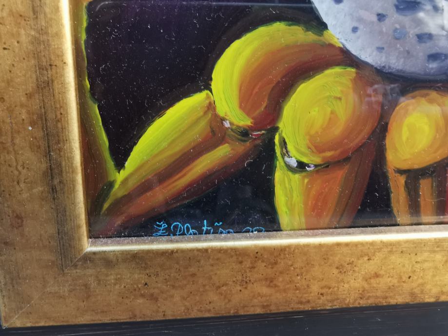 11)Želimir Platiša, ulje na staklu 30x34, sa vrhunskim drvenim okvirom debljine 4 cm 45x50, potpisano