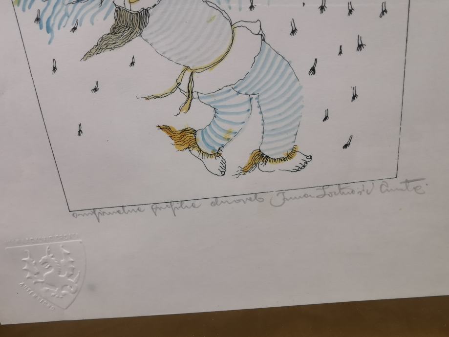 1) Josip Generalić, Mačak, bakropis + akvarel, numeriran broj 4 od 80 i potpisan, sa suhim žigom Generalića i Hlebina, dimenzija 35x50