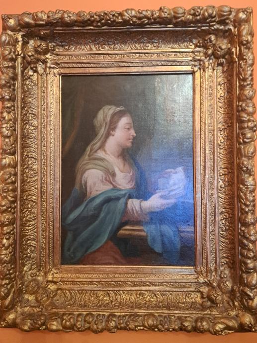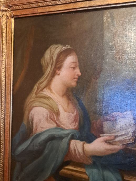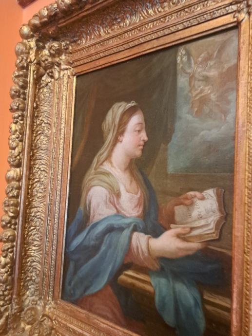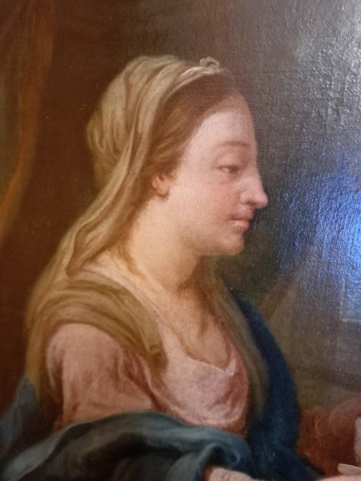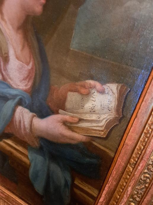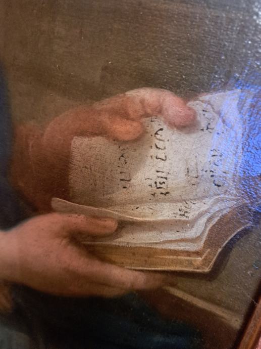 56x39 cm,ulje na platnu talijanskog slikara/1597-1646/, Lodovico Lana da Modena.Slici pripada zlatni historicički okvir.Slika i okvir restaurirani su u Hrvatskom restauratorskom zavodu,Zagreb,Zmajevac 8.Stilski karakterističan rad tog slikara,koji se na ovoj slici i potpisao u otvorenoj knjizi.