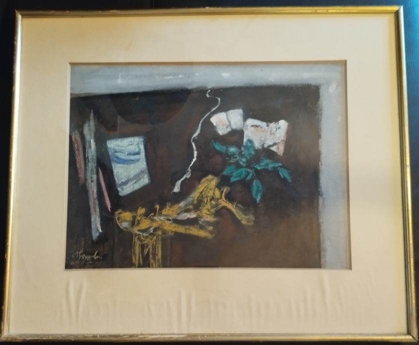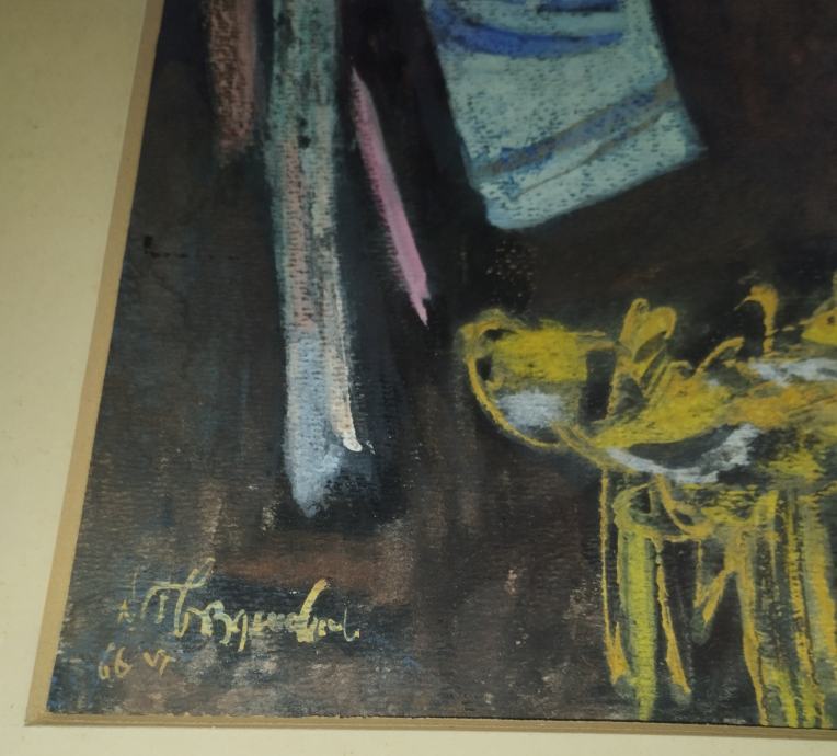 Fenomenalna tempera na papiru iz 1966., čuvenog srpskog slikara i profesora, Nedeljka Gvozdenovića. Dimenzije s okvirom su 56x47 (unutar paspartua 39x30cm).